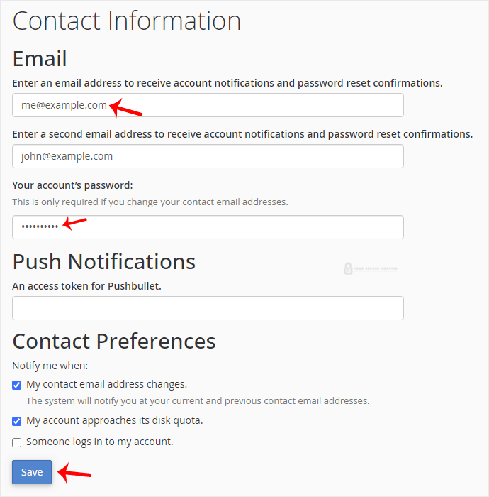 3. Add or update your primary email address to receive account notifications and password reset confirmations. You can optionally add a secondary email address.