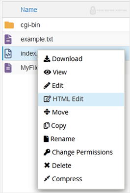 4. Right-click on the file. Then click on Edit or HTML Edit in the Context Menu.