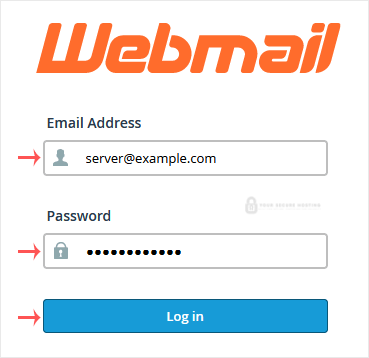 1. Open http://example.com/webmail, replace example.com with your domain name, enter your full email address and password in user login details, and click on Login.