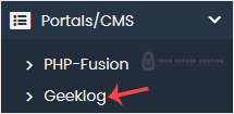 4. On the left side, type Geeklog in the search box, then click the Geeklog link that appears.