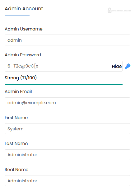 - Admin Email: Your e-mail address.