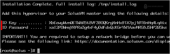 Step 3: Once it completes, it will show you the Slave keys and further instructions for your virtualization type. You can now use these keys to add a node to your SolusVM Master panel. You will need to have a SolusVM 1 Slave license for each node.