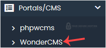 4. On the left side, type WonderCMS in the search box, then click the WonderCMS link that appears.